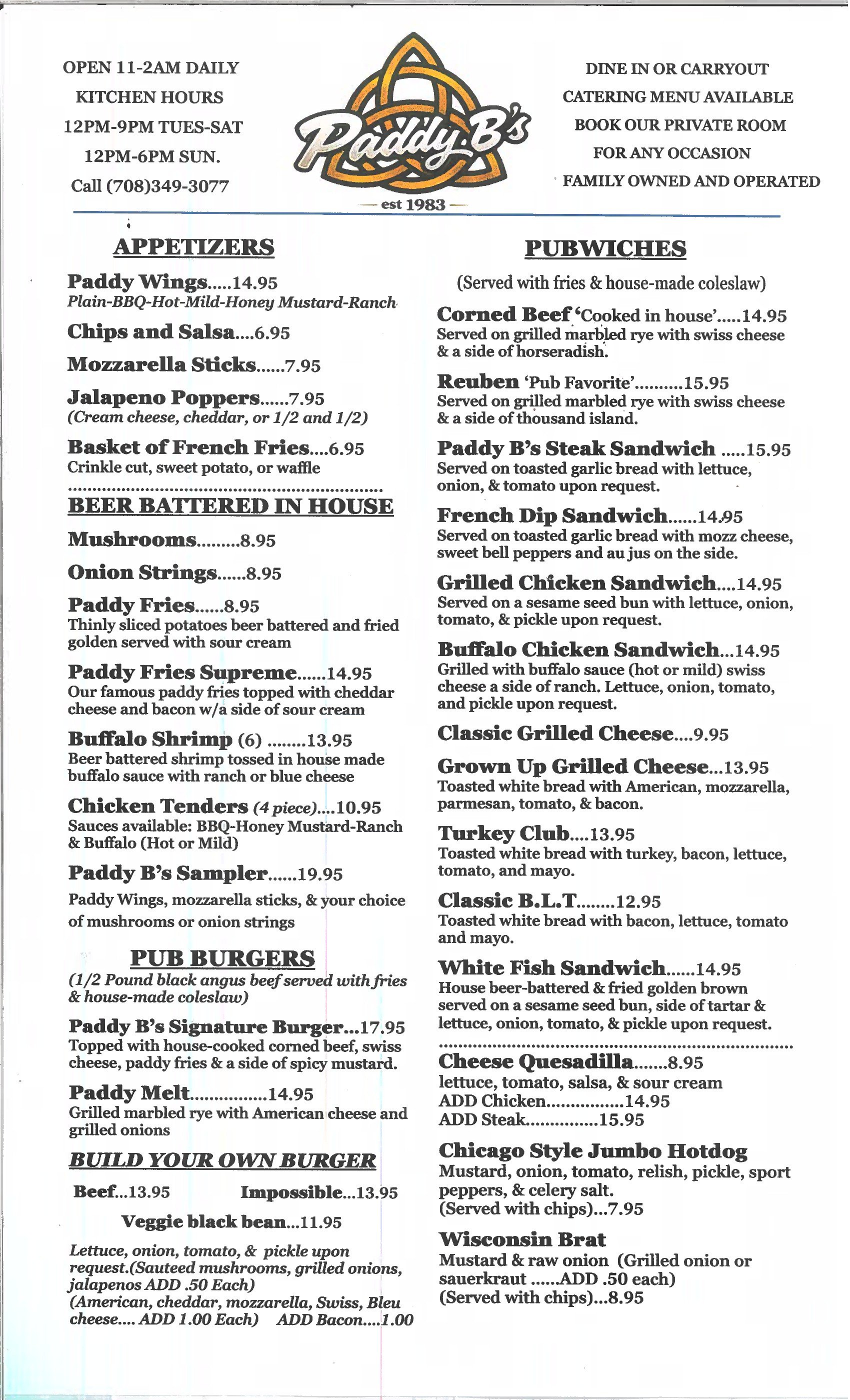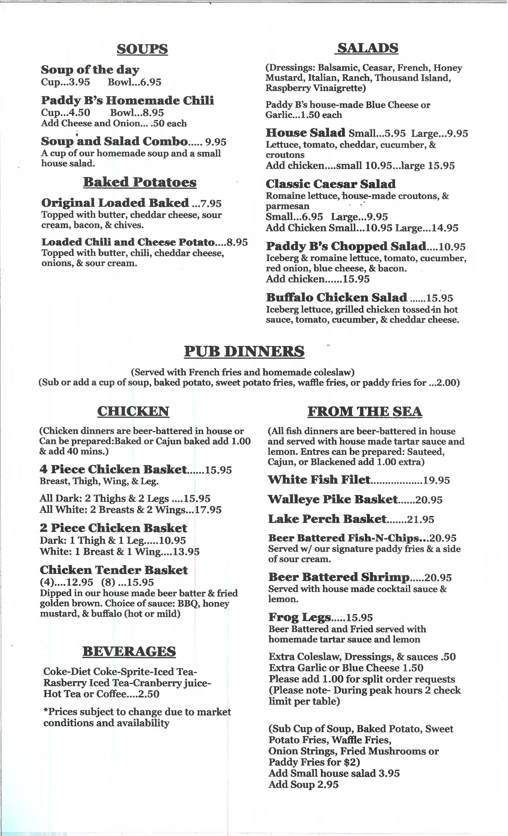 Fresh from the kitchen at Paddy B's